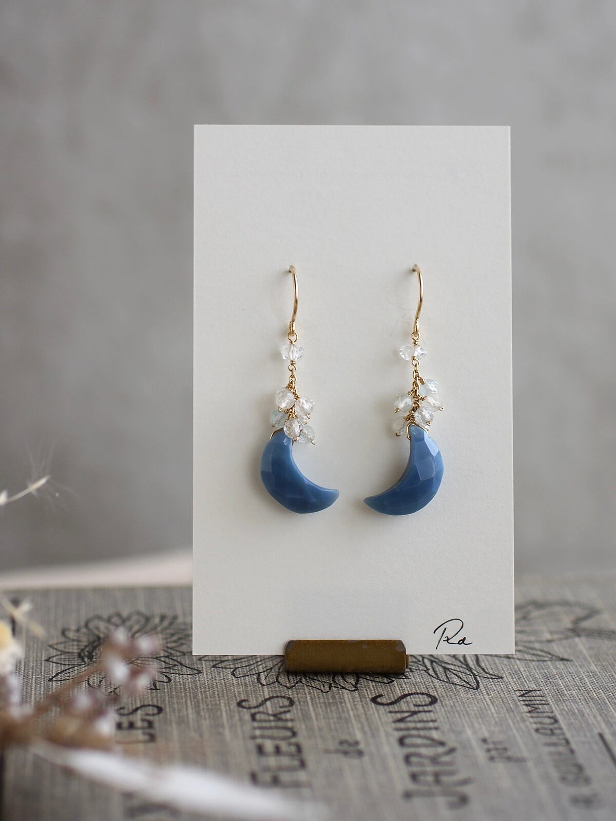 ブルーオパールの月のピアス