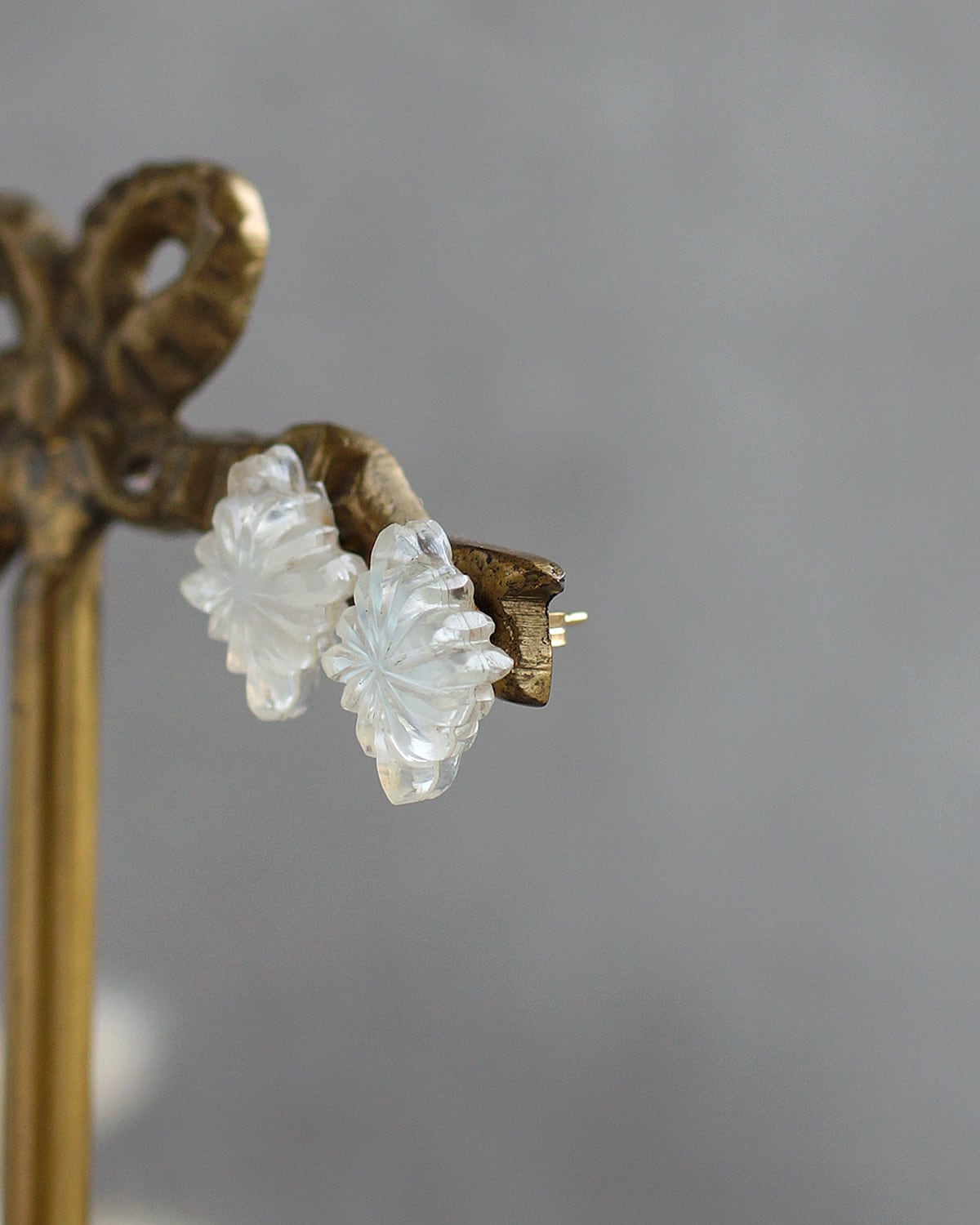 透明なクォーツの奥からマザーオプパールの光沢が見られ、