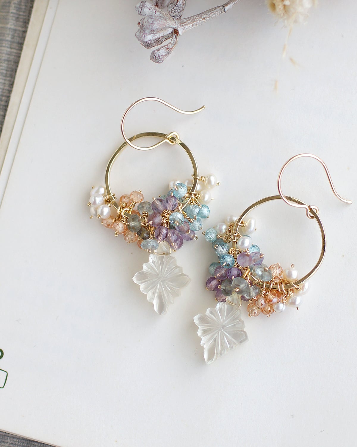 淡水パール、ブルージルコン、ローズアメジスト、モスアクアマリン、