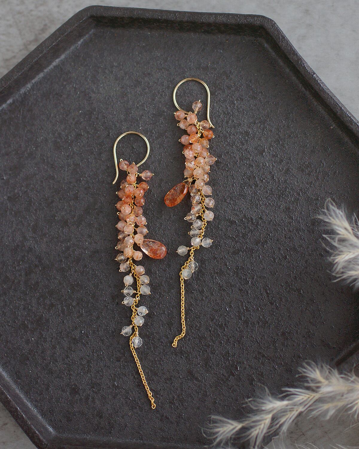 秋の深まりに明るさと血色感を与えてくれるピアスです。