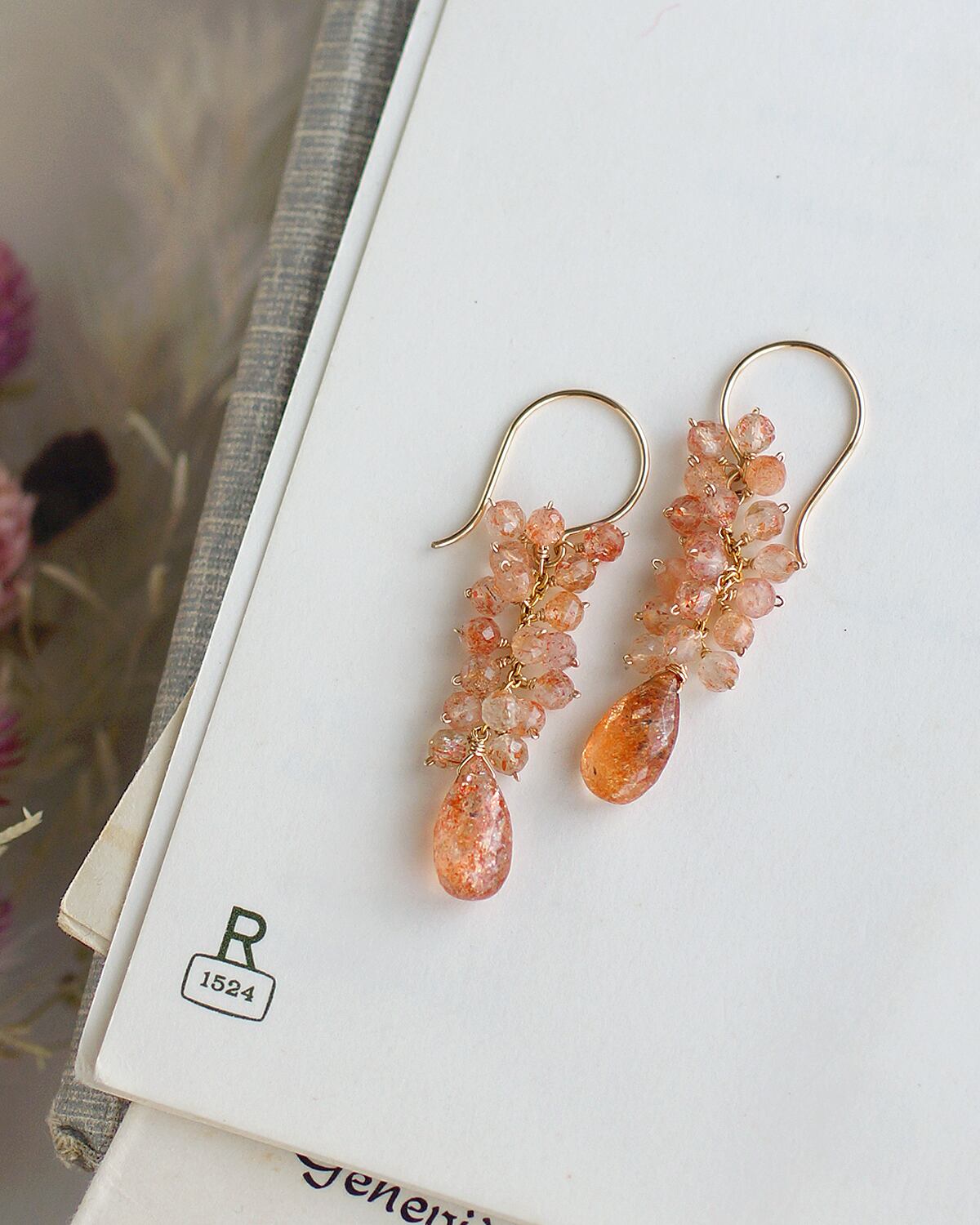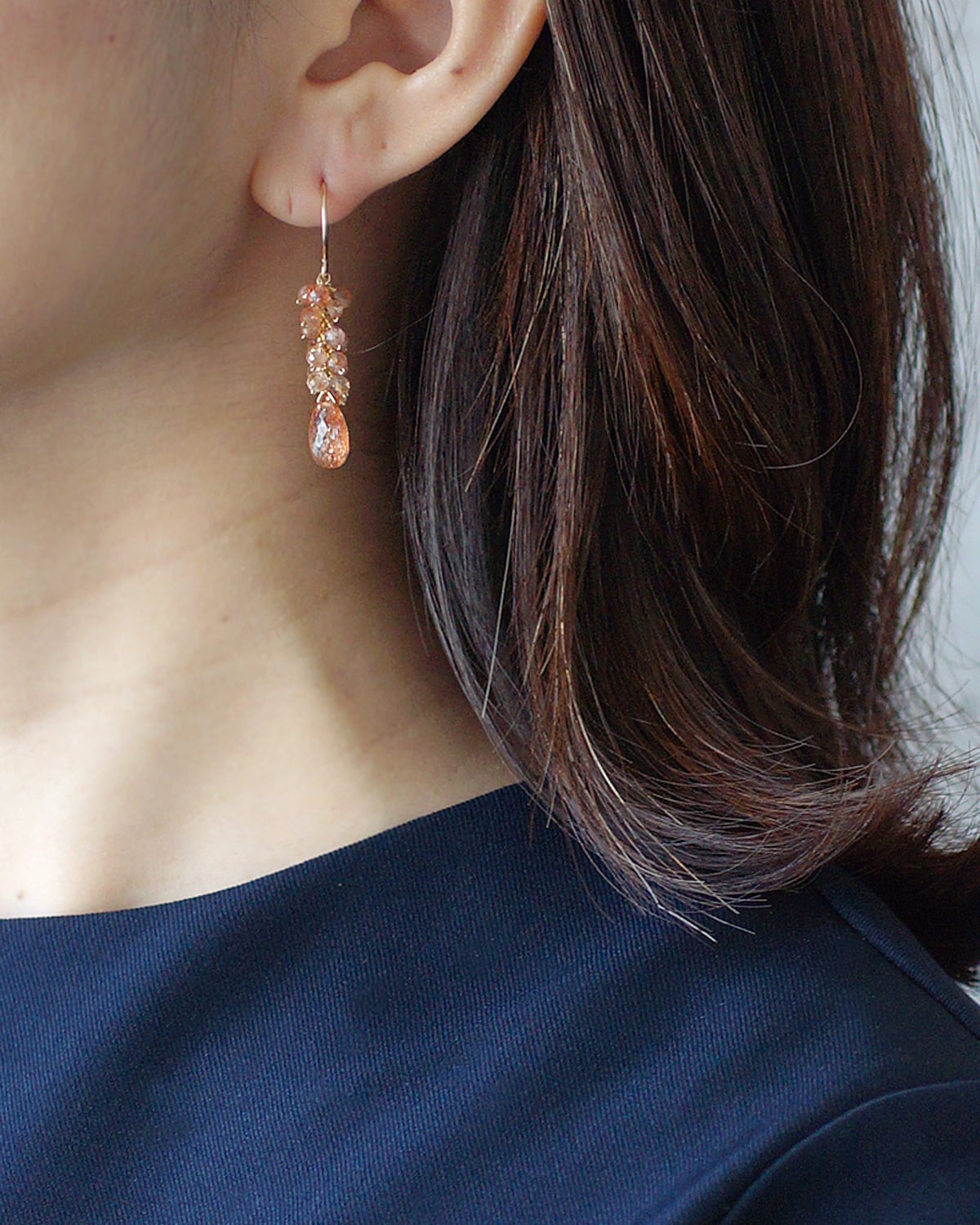 キラキラと輝くサンストーンを多く使ったピアスです。