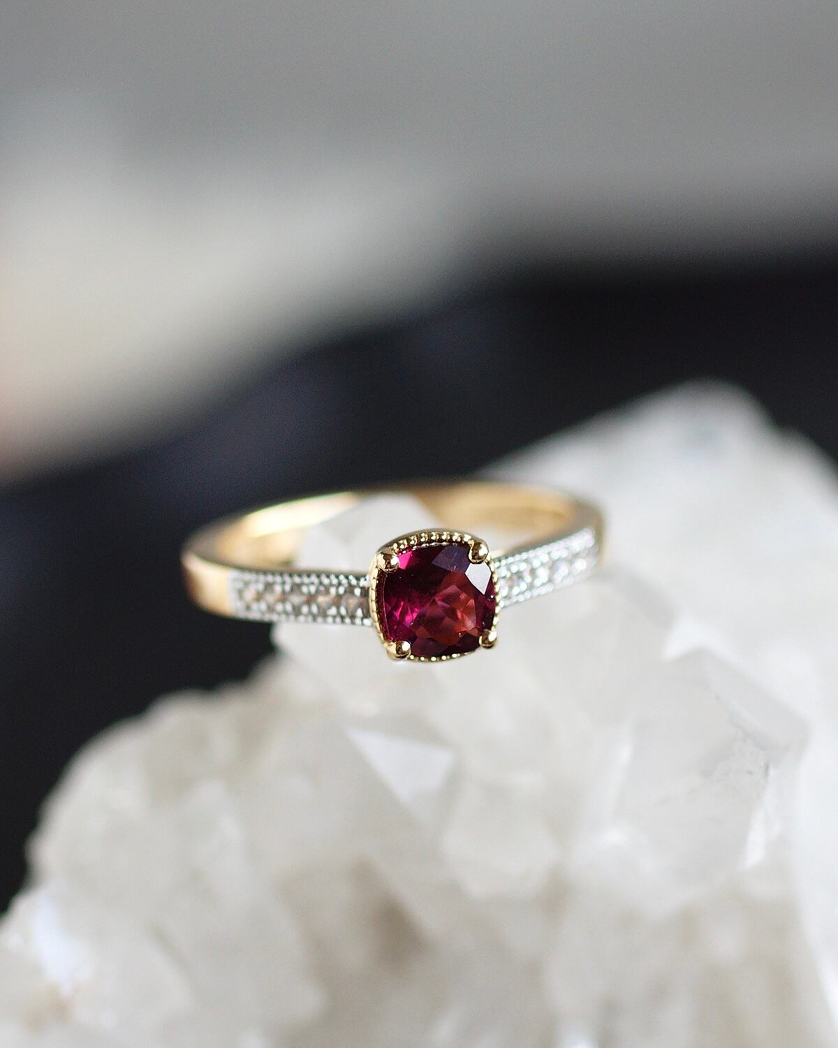 深いワインカラーのロードライトガーネットのリング(12号)です。
