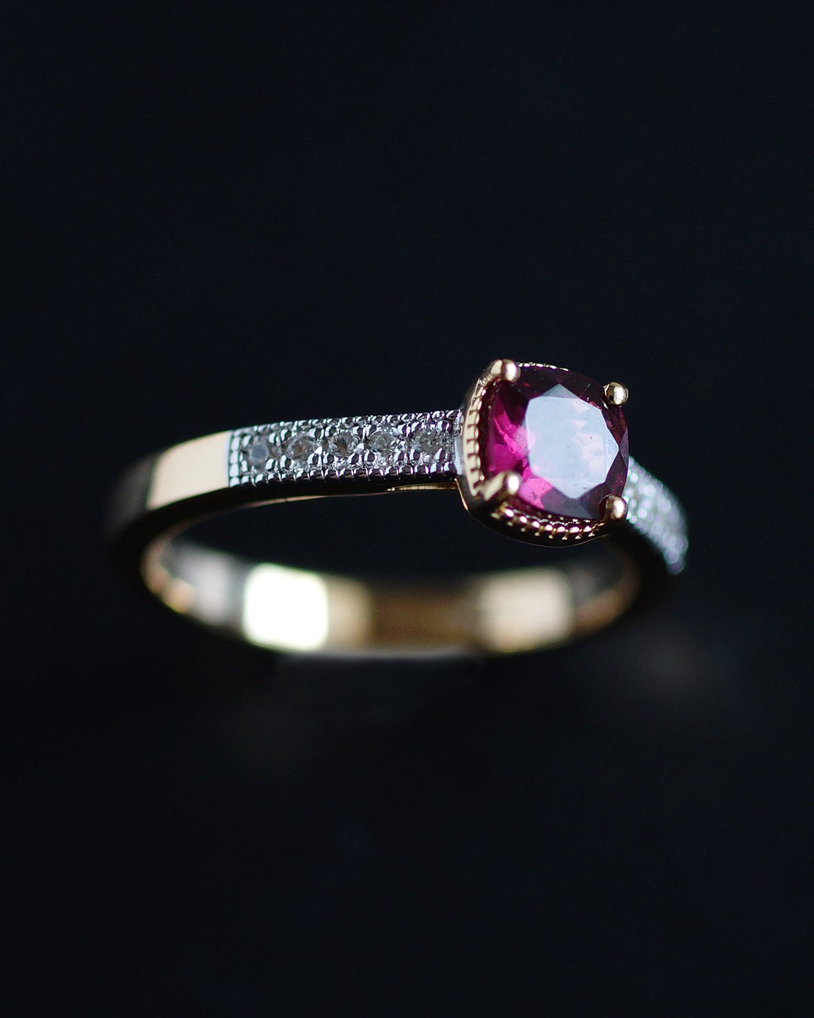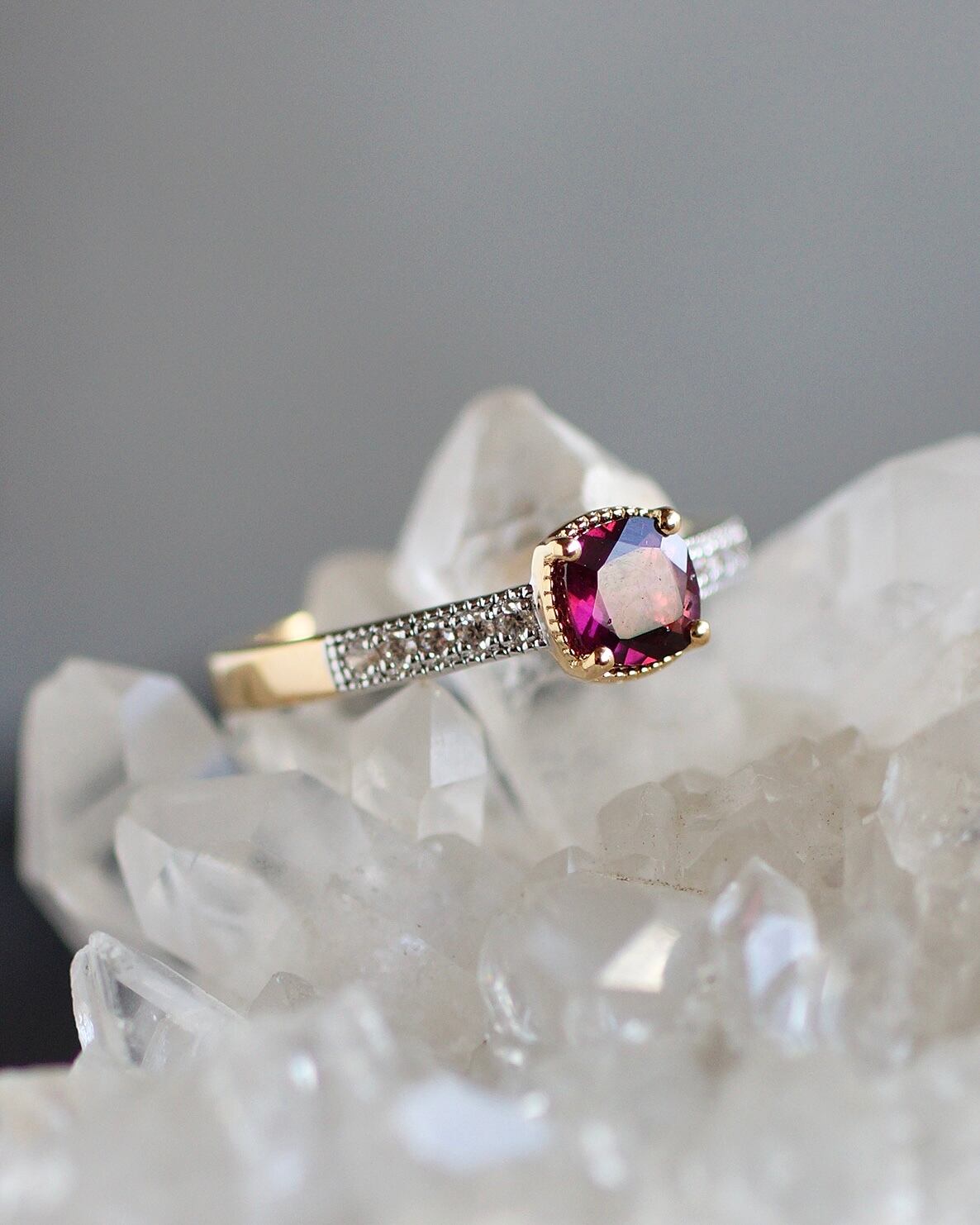 Silver925+K18YG ロードライトガーネットのリング 12号